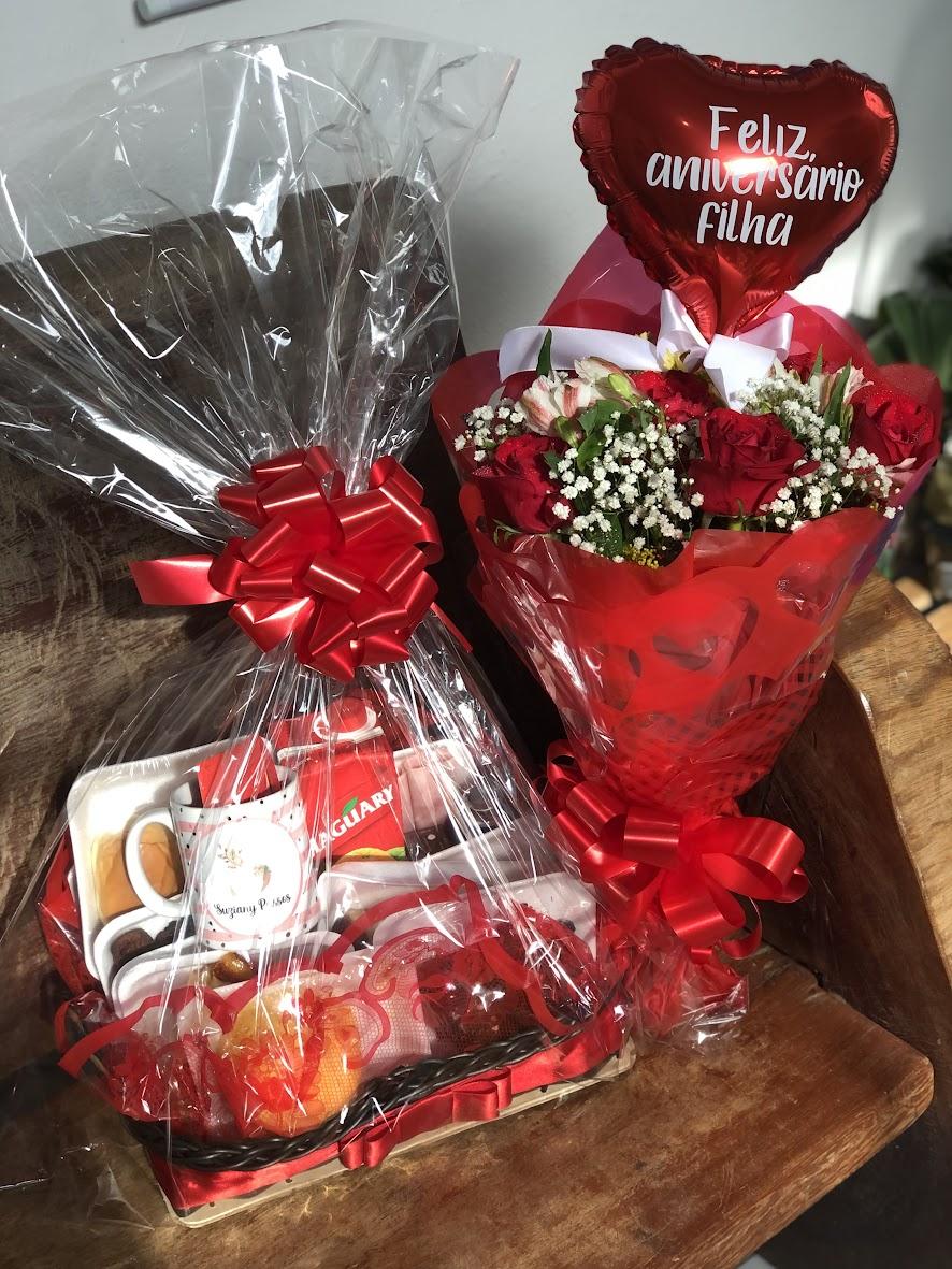Montada em uma cesta de vime decorada com cetim, a composição conta com uma caneca personalizada com o nome, um balão personalizado de 20cm e um elegante buquê com meia dúzia de rosas, tornando o presente ainda mais emocionante e inesquecível.
