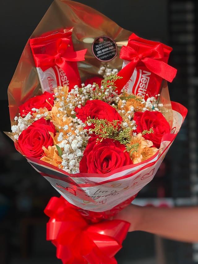 Surpreenda com um gesto doce e cheio de significado: um buquê montado com 6 rosas-vermelhas acompanhado por duas deliciosas barras de chocolate. A combinação perfeita entre romantismo e sabor, ideal para expressar carinho, paixão e afeto. Um presente único e memorável, perfeito para qualquer ocasião especial – ou simplesmente para dizer “você é importante para mim”.