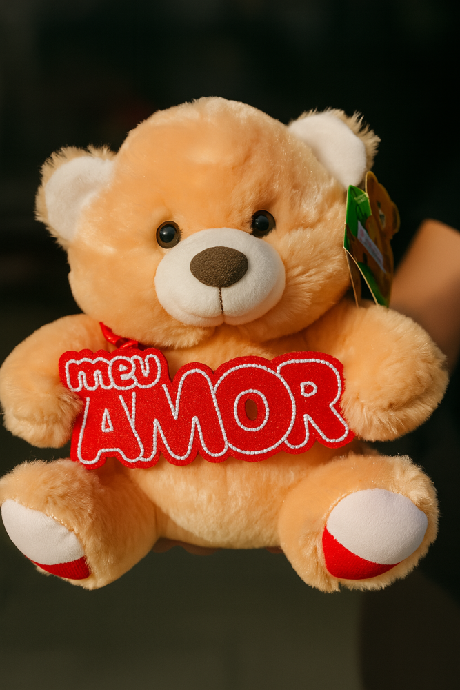 Com impressionantes 25cm de altura, o urso "Meu Amor" é perfeito para causar impacto. Acompanha a mensagem “meu AMOR” bordada no coração, sendo o mimo ideal para demonstrar sentimentos profundos de forma afetuosa e memorável. Ideal para complementar buquês e cestas de forma delicada e apaixonante.