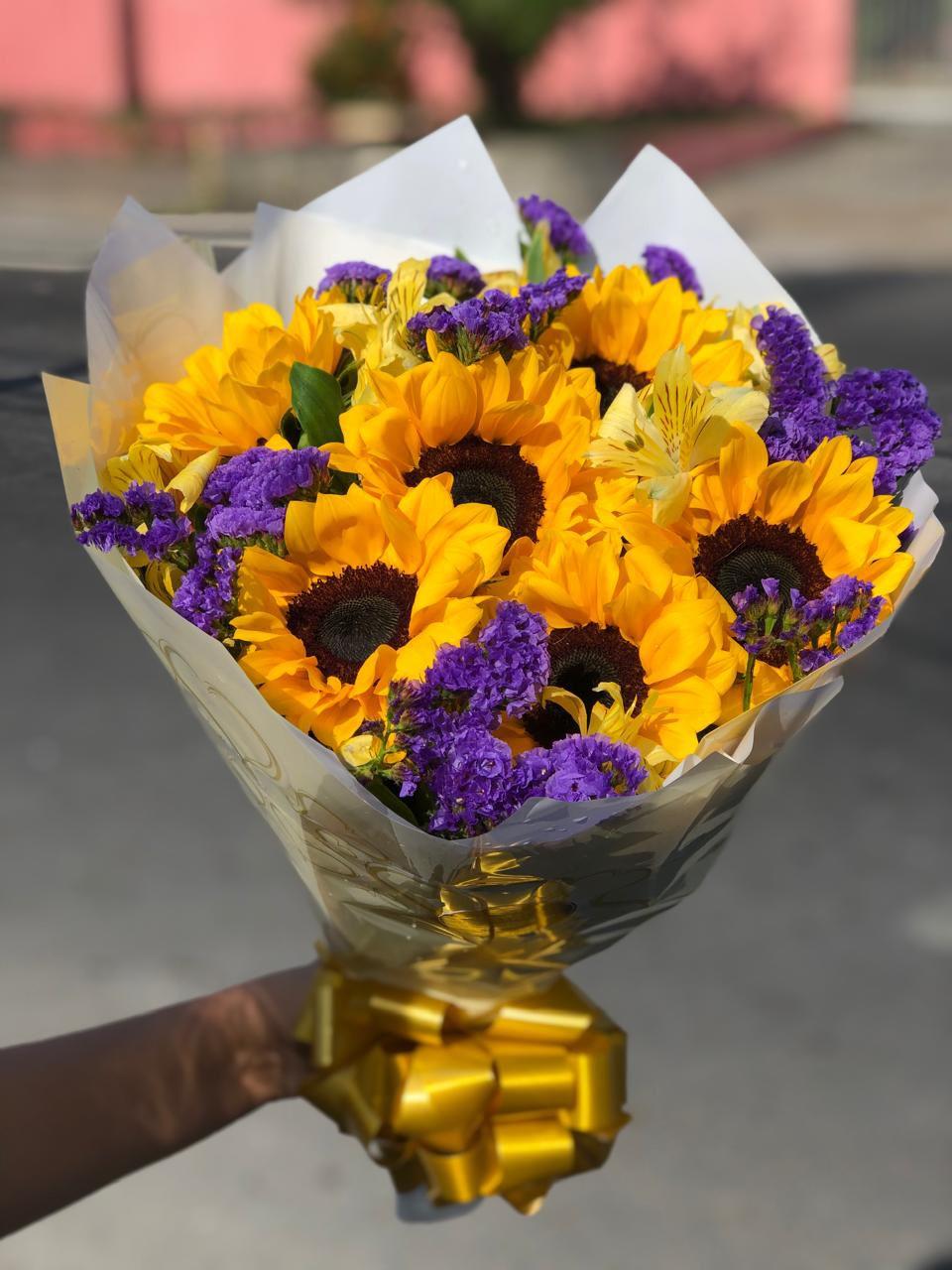 Ilumine o dia de alguém especial com o nosso buquê radiante, composto por 6 girassóis naturais, vibrantes e cheios de vida. Complementado por delicadas astromélias e o charme do tango, este arranjo transmite alegria, otimismo e boas energias. A embalagem é finalizada com um elegante laço, tornando o presente ainda mais encantador. Acompanha um cartão personalizado com a sua mensagem, perfeito para expressar sentimentos de forma inesquecível.