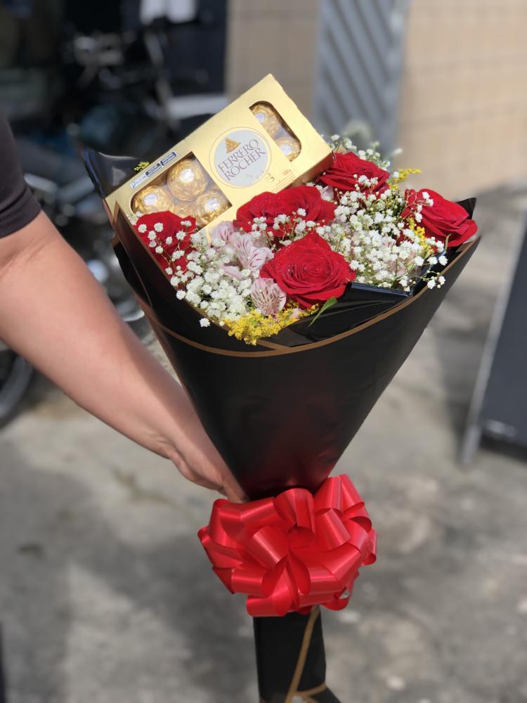 Surpreenda com a elegância do Buquê Amor Clássico, composto por 5 deslumbrantes rosas vermelhas colombianas, símbolo eterno de paixão e romance. Acompanha uma caixa de chocolates Ferrero Rocher, perfeita para adoçar o momento. A combinação é apresentada em uma embalagem preta sofisticada, finalizada com um laço delicado, transmitindo charme e intensidade.
