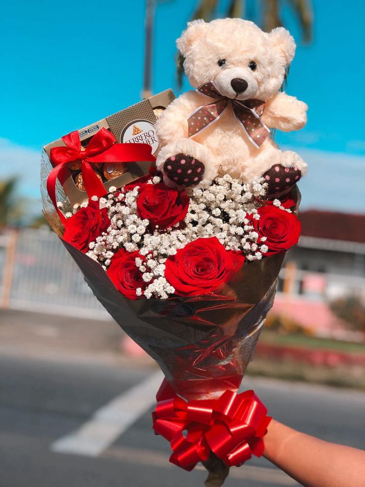 Este buquê com 8 lindas rosas vermelhas, símbolo de paixão e amor eterno, é acompanhado por um urso de pelúcia de 22 cm, que traz ainda mais ternura ao presente. Para adoçar o momento, inclui também uma caixa de Ferrero Rocher.